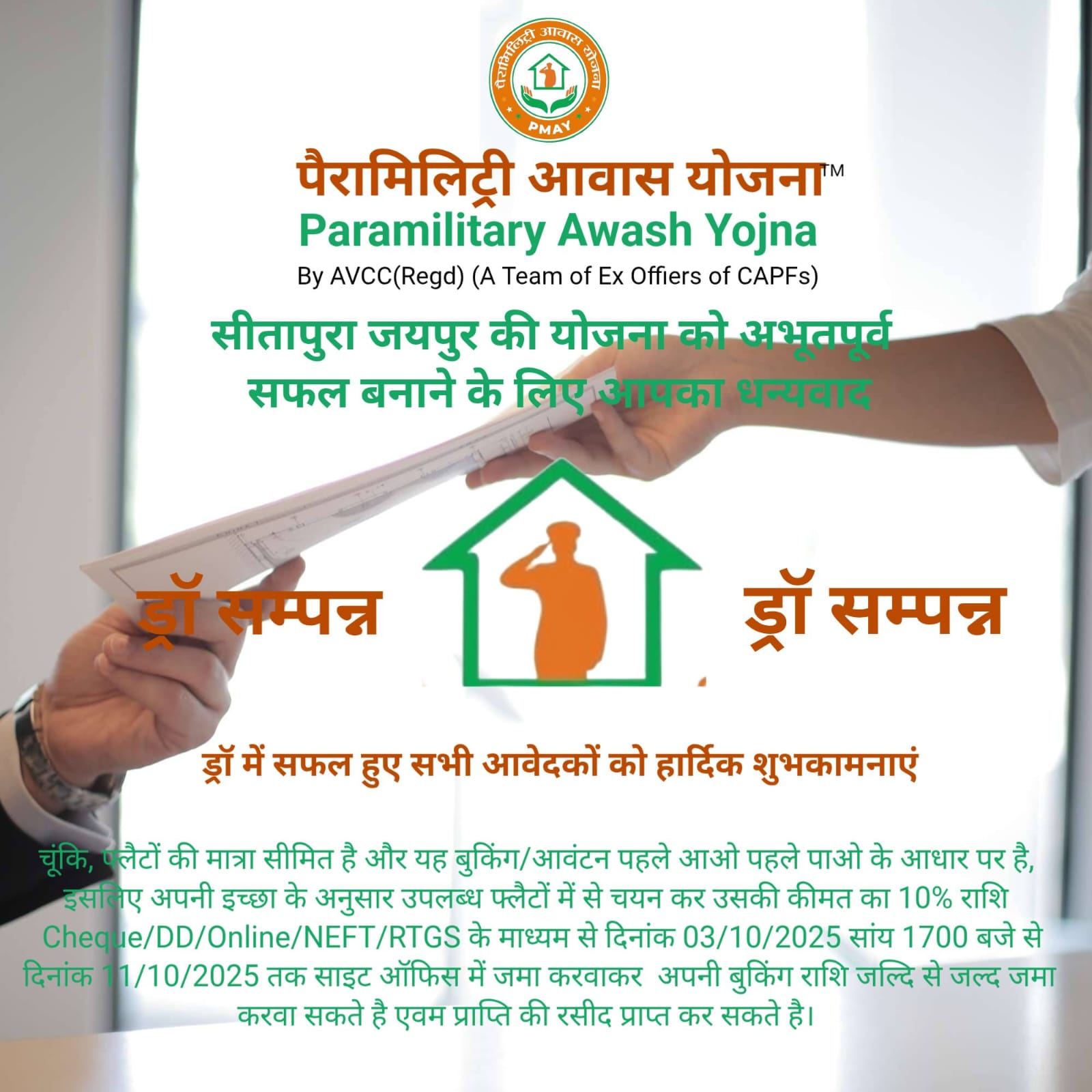 • A Housing Scheme for Paramilitary Force personnel. Allotment through Draw.